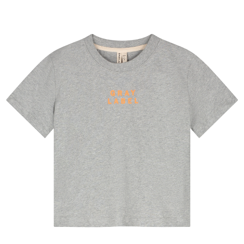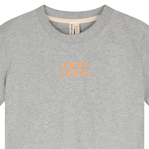 Shop het Gray Label oversized tee 15Y anniversary grey melange - bright melon tshirt online bij Labels for Little Ones. Dit mooie shirt met korte mouwen is uitgevoerd in een effen dessin in grijze grey melange kleur met het gray label logo op de voorkant
