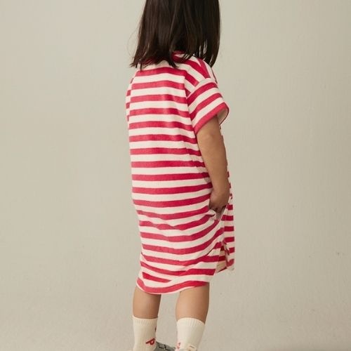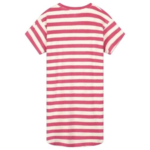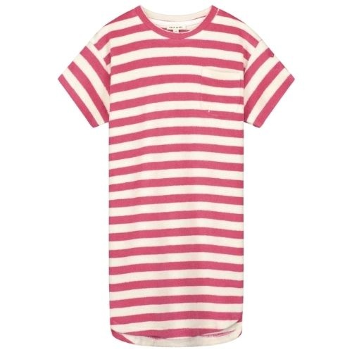 Shop de Gray Label pop terry oversized tee dress cherry cream jurk online bij Labels for Little Ones. Deze toffe jurk met korte mouwen van badstof is uitgevoerd in een gestreept dessin van gebroken witte en felroze strepen. De t-shirt jurk heeft een overs...