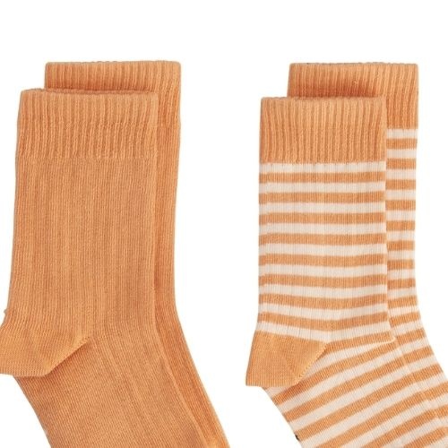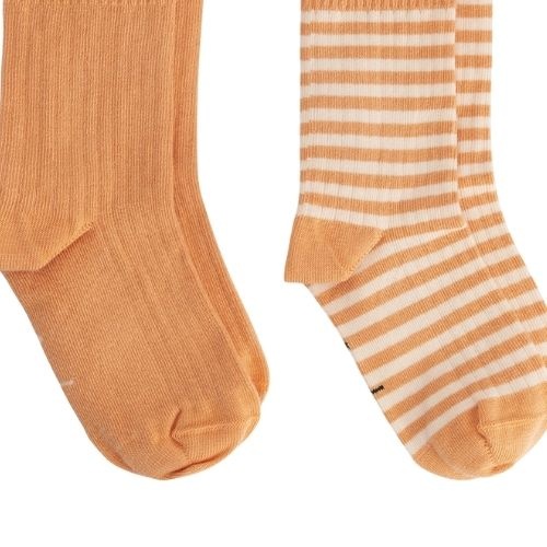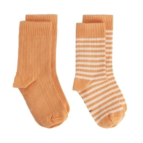 Shop de Gray Label ribbed socks gots 2-pack melon - cream sokken online bij Labels for Little Ones. Twee paar sokken van zachte geribde stof tot over de enkel. Het ene paar is uitgevoerd in een effen kleur melon oranje en het andere paar met een gestreept...