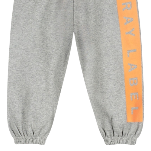 Shop de Gray Label track pants 15Y anniversary grey melange - bright melon broek online bij Labels for Little Ones. Een loose-fit jogger uitgevoerd in een grijze kleur grey melange met een oranje logo kenmerk op de broekspijp van de broek. De broek heeft