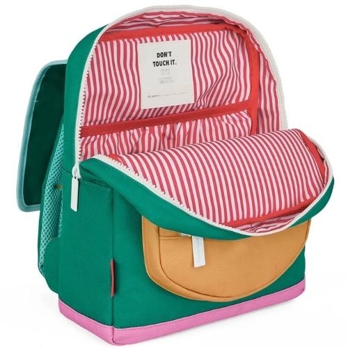 De Hello Hossy bag mini ali rugtas bestel je online bij Labels for Little Ones. Een toffe rugzak om mee te nemen naar de kinderopvang, kleuterschool of basisschool. Deze tas met waterafstotende coating heeft een groot vak met ritssluiting met een flap erover, een voorvak met ritssluiting, zijvak voor drinkbeker, een binnenvak, verstelbare schouderbanden, een clip aan de voorkant en een hengsel aan de bovenkant. Uitgevoerd in een vrolijk en origineel multi color design van effen kleuren.