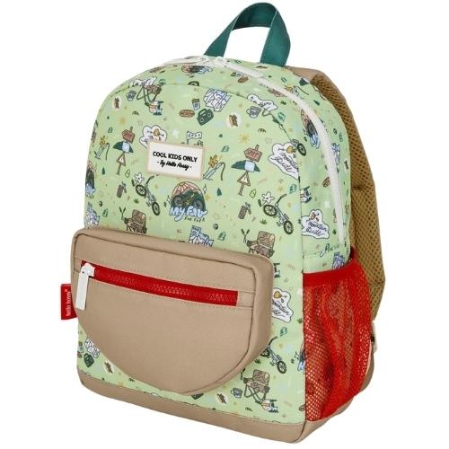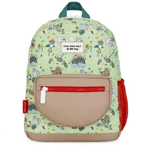 De Hello Hossy bag mountain ride rugtas bestel je online bij Labels for Little Ones. Een toffe rugzak om mee te nemen naar de kinderopvang, kleuterschool of basisschool. Deze tas met waterafstotende coating heeft een groot vak met ritssluiting, een voorva...