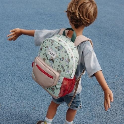 De Hello Hossy bag mountain ride rugtas bestel je online bij Labels for Little Ones. Een toffe rugzak om mee te nemen naar de kinderopvang, kleuterschool of basisschool. Deze tas met waterafstotende coating heeft een groot vak met ritssluiting, een voorvak met ritssluiting, zijvak voor drinkbeker, een binnenvak, verstelbare schouderbanden, een clip aan de voorkant en een hengsel aan de bovenkant. Uitgevoerd in een vrolijk en origineel multi color design met een leuke, kleurrijke print.