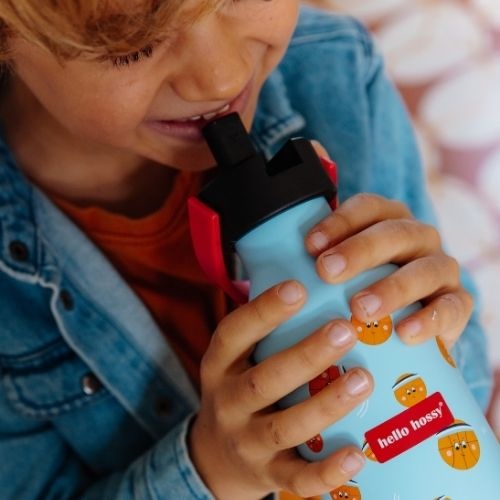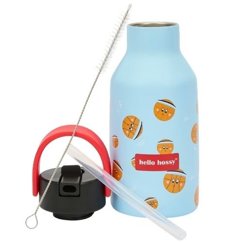 De Hello Hossy bottle 350 ml bbal crew drinkfles bestel je online bij Labels for Little Ones. Een leuke drinkbeker die handig mee te nemen is onderweg of naar school. De geïsoleerde waterfles houdt dranken 12 uur lang warm en 24 uur lang koel. De fles is handig in gebruik voor kinderen door de antislip bodem en de beker is te gebruiken met en zonder rietje. Uitgevoerd in een vrolijk en origineel design.