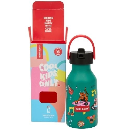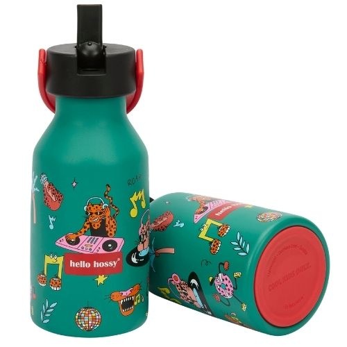 De Hello Hossy bottle 350 ml disco roar drinkfles bestel je online bij Labels for Little Ones. Een leuke drinkbeker die handig mee te nemen is onderweg of naar school. De geïsoleerde waterfles houdt dranken 12 uur lang warm en 24 uur lang koel. De fles is handig in gebruik voor kinderen door de antislip bodem en de beker is te gebruiken met en zonder rietje. Uitgevoerd in een vrolijk en origineel design.