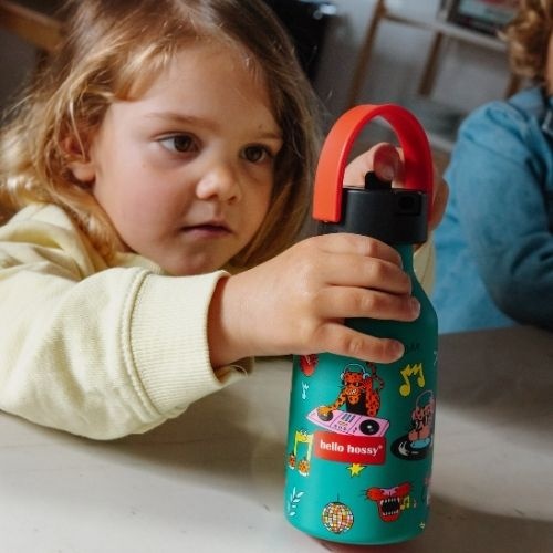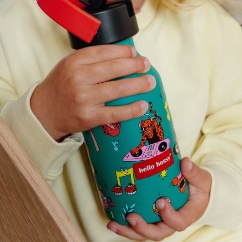 De Hello Hossy bottle 350 ml disco roar drinkfles bestel je online bij Labels for Little Ones. Een leuke drinkbeker die handig mee te nemen is onderweg of naar school. De geïsoleerde waterfles houdt dranken 12 uur lang warm en 24 uur lang koel. De fles is...