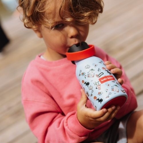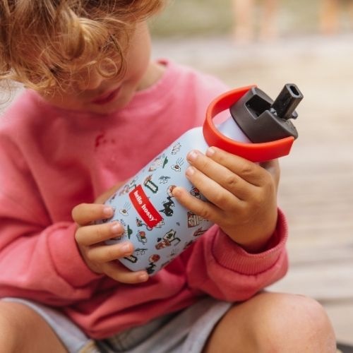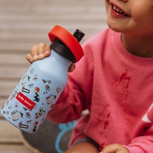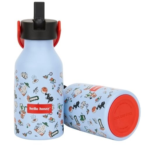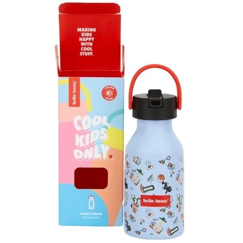 De Hello Hossy bottle 350 ml dunk drinkfles bestel je online bij Labels for Little Ones. Een leuke drinkbeker die handig mee te nemen is onderweg of naar school. De geïsoleerde waterfles houdt dranken 12 uur lang warm en 24 uur lang koel. De fles is handig in gebruik voor kinderen door de antislip bodem en de beker is te gebruiken met en zonder rietje. Uitgevoerd in een vrolijk en origineel design.