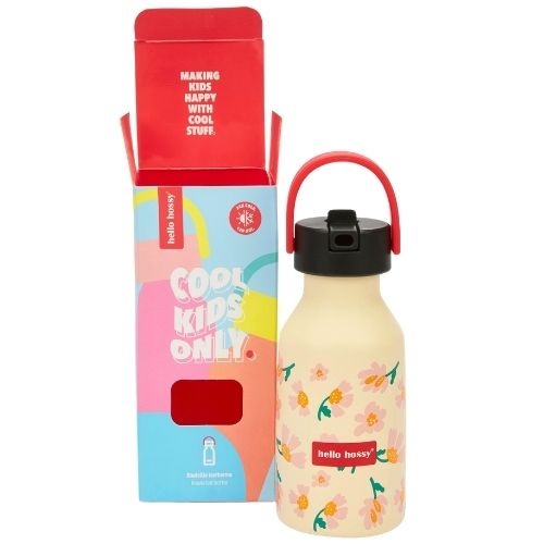 De Hello Hossy bottle 350 ml springtime drinkfles bestel je online bij Labels for Little Ones. Een leuke drinkbeker die handig mee te nemen is onderweg of naar school. De geïsoleerde waterfles houdt dranken 12 uur lang warm en 24 uur lang koel. De fles is handig in gebruik voor kinderen door de antislip bodem en de beker is te gebruiken met en zonder rietje. Uitgevoerd in een vrolijk en origineel design.