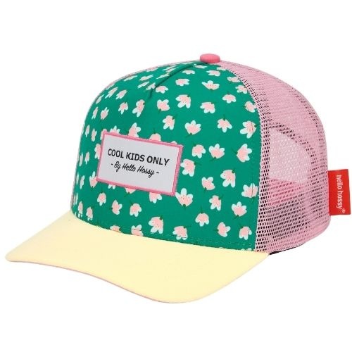 Shop de Hello Hossy kids cap garden joy pet nu online bij Labels for Little Ones. Deze pet heeft een groen voorpaneel en een gele klep. De pet heeft een roze mesh uitvoering wat zorgt voor een luchtig draag comfort. Op het voorpaneel zit een label met de