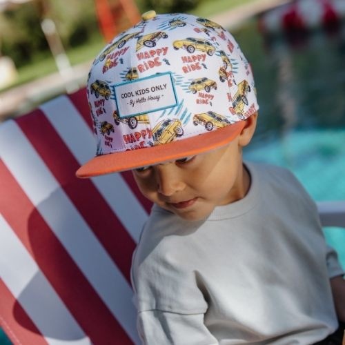 Shop de Hello Hossy kids cap happy ride pet nu online bij Labels for Little Ones. Deze limited edition pet heeft is uitgevoerd in een speels dessin in het thema van auto's en racen. Gemaakt van ecologisch verantwoorde materialen en geschikt voor elk seizoen. Perfect om je kind te beschermen tegen de zon.