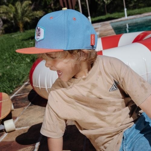 Shop de Hello Hossy kids cap hot dog pet nu online bij Labels for Little Ones. Deze pet in effen blauw heeft een stoere uitstraling en maakt elke outfit af. Het voorpaneel heeft een patch met een broodje hot dog worst. Gemaakt van ecologisch verantwoorde materialen en geschikt voor elk seizoen. Ideaal om je kind te beschermen tegen de zon.