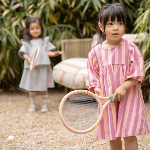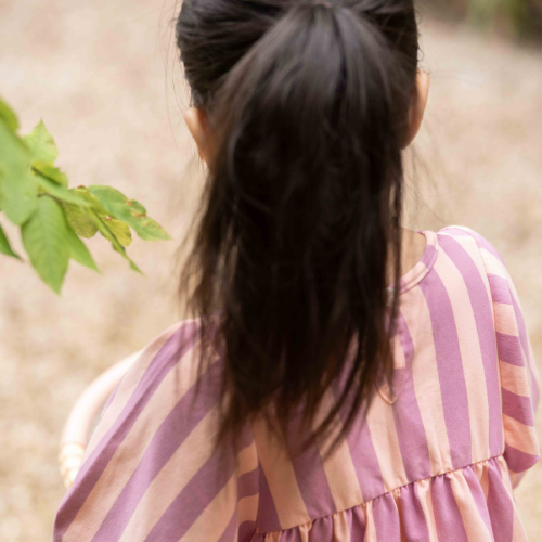 House of Jamie balloon high waist dress violet bellini stripes - jurk