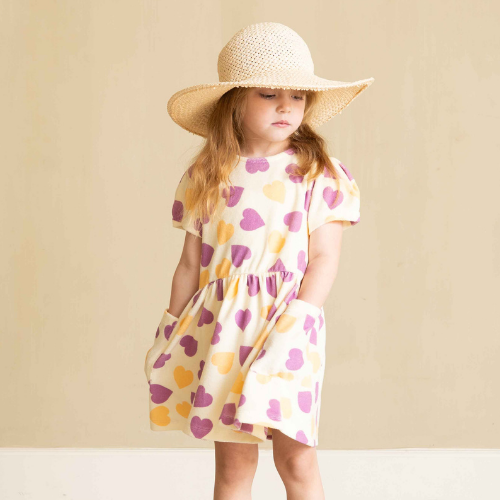 House of Jamie relaxed pocket dress happy hearts terry cotton - jurk
