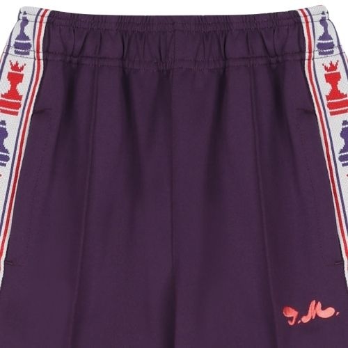 Shop de Jelly Mallow chess track pants purple broek online bij Labels for Little Ones. Deze toffe broek is uitgevoerd in een warme paarse kleur met op de zijkant van beide broekspijpen een brede witte bies met schaakstukken in rode en paarse kleuren. Aan
