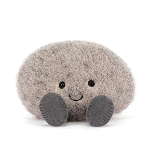 Maak kennis met de meest relaxte steen die je ooit zult ontmoeten! De Amuseable Pebble is geïnspireerd op de gladde kiezelstenen van de Engelse kust. Uitgevoerd in een prachtige, gemêleerde grijze pluche die eruitziet als natuursteen, maar aanvoelt als een zacht wolkje. Met zijn rustige uitstraling, die bekende Jellycat-glimlach en vrolijke bruine corduroy beentjes brengt hij direct een gevoel van rust in elke ruimte. Of hij nu dient als decoratie in een modern interieur, als 'trooststeen' in een kinderhand of als grappig accent op een bureau: deze kleine kiezel is een rots in de branding voor iedereen die wel een glimlach kan gebruiken!