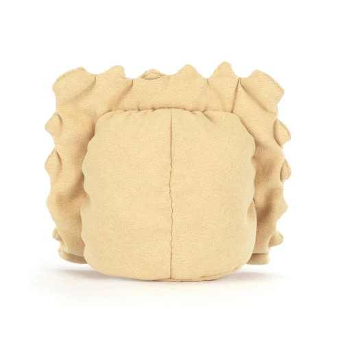 Mamma Mia! Deze Amuseable Ravioli is bijna te schattig om op te eten. Met zijn prachtig gekartelde randjes en zijn zachte, romige kleur ziet hij eruit als een versgemaakt deegkussentje. Deze kleine pasta-vriend heeft een vrolijke glimlach en eigenwijze corduroy beentjes die klaarstaan om overal mee naartoe te huppelen. Hij is heerlijk compact en zacht, waardoor hij precies in een kinderhand past of een grappig accent geeft aan de kinderkamer. Het perfecte cadeautje voor kleine fijnproevers en iedereen die houdt van een vleugje Italië in huis!