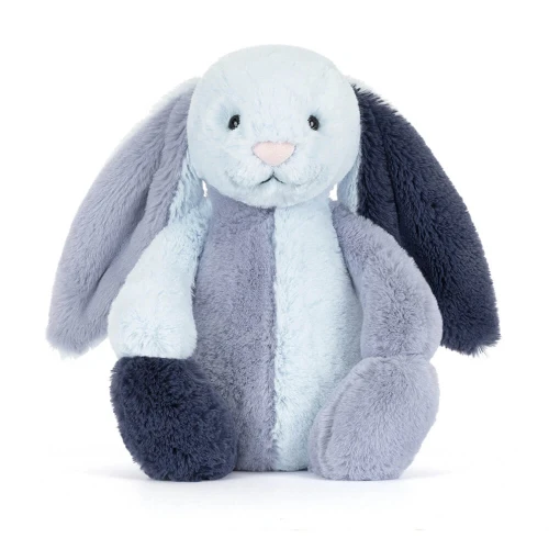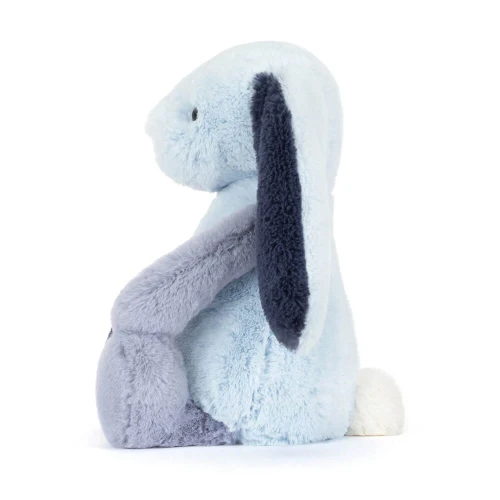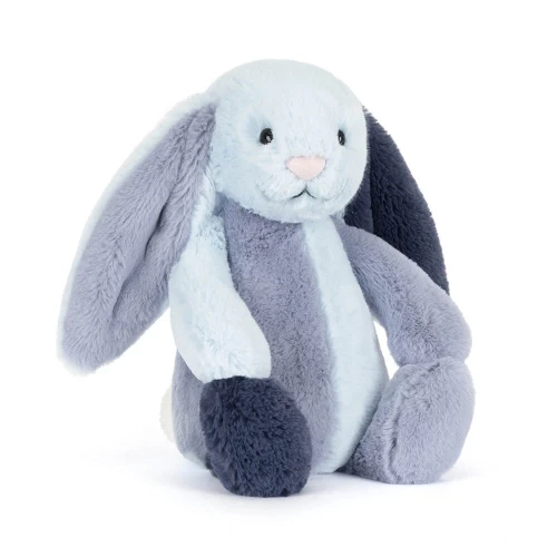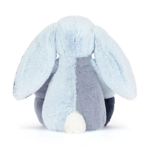Maak kennis met de Puddlesea Bunny, een konijntje met een heel eigen karakter! In plaats van één kleur, is deze Bashful Bunny opgebouwd uit een prachtig 'patchwork' van verschillende blauwtinten, patronen en texturen. Van zachte bloemenprints tot speelse stipjes en streepjes; elk onderdeel van haar lijfje vertelt een eigen verhaal. Met haar iconische lange flaporen en die zijdezachte blauwe neus is ze niet alleen een heerlijk knuffelmaatje, maar ook een prachtig decoratiestuk voor de babykamer. Een uniek cadeau voor wie houdt van een tikkeltje nostalgie en een heleboel zachtheid!