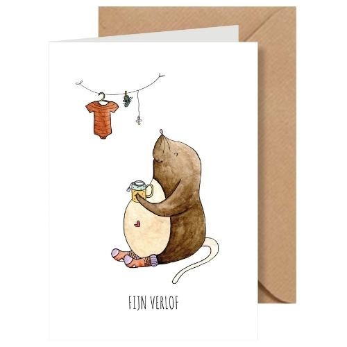 De Juulz kaartje 'fijn verlof' mol wenskaart bestel je online bij Labels for Little Ones. Toch wel een speciaal moment als mama met verlof gaat om zich helemaal voor te kunnen bereiden op de komst van een kleintje. Dit mooie wenskaartje heeft een prachtige handgetekende illustratie van een zwangere mol met de tekst ‘fijn verlof’. Een mooi kaartje om op te sturen of voor bij een verlof cadeautje voor een collega. De kaart komt met een nette bruine enveloppe.