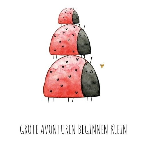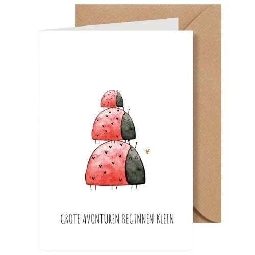 Juulz Illustrations Juulz kaartje 'grote avonturen beginnen klein' lieveheersbeestjes | wenskaart
