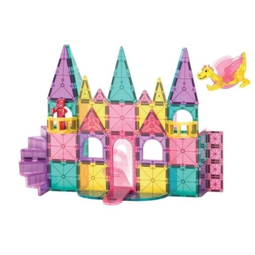 * 48 magnetische stukken, waaronder 1 ophaalbrug, 1 Drakenfiguur, 1 Koningsfiguur, 2 wenteltrappen, 2 balkons, 4 ramen, 2 gelijkzijdige driehoeken (glitter), 2 kwartcirkels, 5 gelijkbenige driehoeken, 20 vierkanten (10 glitter, 10 standaard), 2 microMAGS gelijkzijdige driehoeken, 4 microMAGS vierkanten en 2 microMAGS gelijkbenige driehoeken