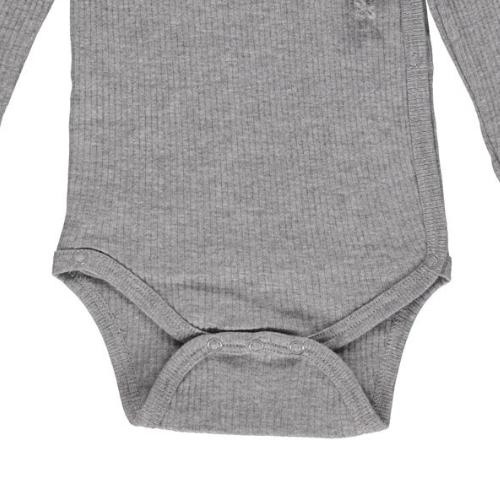 Bestel de MarMar Copenhagen Modal Body Mini LS Grey Melange romper online bij Labels for Little Ones. Deze mooie romper met ribstof heeft een overslag met een leuk strikdetail. De body is uitgevoerd in de kleur Grey Melange (grijs) en is heerlijk zacht. De romper is verkrijgbaar van maat 56 t/m maat 74. De romper met overslag heeft aan de onderkant een drukknoopssluiting voor extra gemak bij het aan- en uitkleden.
