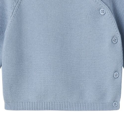 Shop het MarMar Copenhagen toll cotton links fresh air online bij Labels for Little Ones. Een mooi gebreid overslagtruitje met lange mouwen en knoopjes aan de gehele zijkant voor extra gemak en comfort bij het aan- en uitkleden. Het wikkelvestje is uitgevoerd in een blauwe kleur met een geribd patroon in de stof en heeft geribde boorden bij de halslijn, manchetten en zoom.