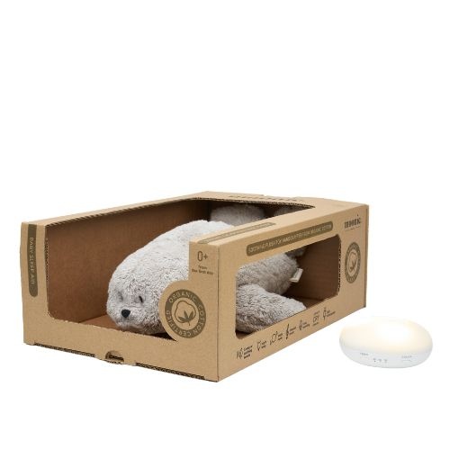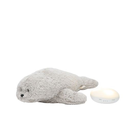 Naast dat de knuffel een fijne zachte vriend is om mee te knuffelen zorgt hij ook voor veel rust, met vijf verschillende geluiden. Je kan kiezen uit het geruststellende geluid van de baarmoeder, beekjes, golven, geluiden van de wind óf een zacht regengeluid. De zeehond wordt geleverd met een instelbare volumeknop, zodat je het juiste volumeniveau kunt kiezen dat past bij de behoeften van jullie baby. Er zit zelfs een heel fijn lampje ingebouwd! Het lampje heeft meerdere intensiteit niveaus zodat het kan worden aangepast aan de behoeften van de baby zonder hun slaap te verstoren, zo heeft jullie kindje altijd een zacht lampje bij de hand in het donker.