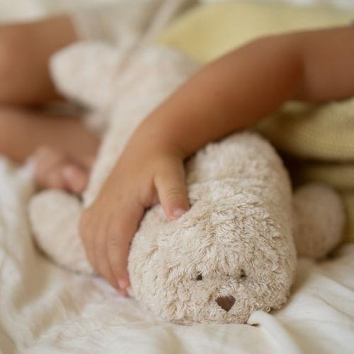 De Humming Bear Moonie is wasbaar, verwijder het geluid- en lichtmodule voordat je de knuffel op een zacht wasprogramma tot 40°C wast.