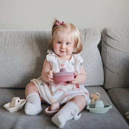 De Mushie bath boats pastel badspeeltjes shop je online bij Labels for Little Ones. Speelplezier in bad met deze leuke gekleurde bootjes. Natuurlijk ook leuk om gewoon mee te spelen. De 5 bootjes van verschillende kleuren kunnen op elkaar worden gestapeld of aan elkaar worden geklikt, zodat er een treintje van bootjes ontstaat.