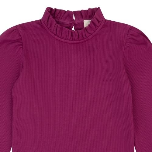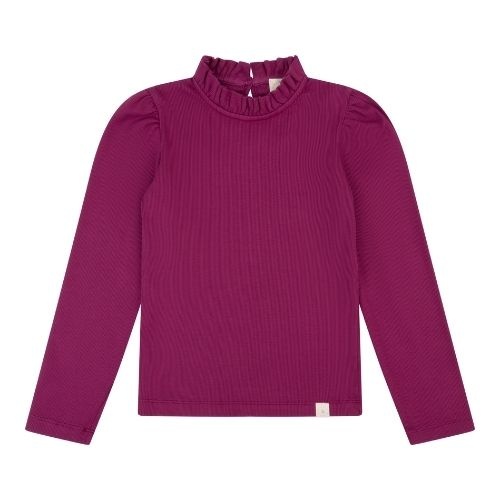 Shop de Navy Natural loulou top berry rib online bij Labels for Little Ones. Dit mooie shirt met lange mouwen is uitgevoerd in een paarse kleur berry. De longsleeve heeft een opstaande ruffled halslijn, geplooide pofmouwtjes en een subtiele rib in de stof...