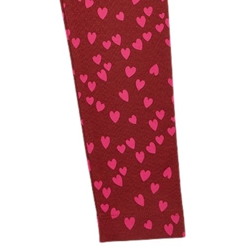 Shop de Petit Blush lola legging love potion aop broek online bij Labels for Little Ones. Deze vrolijke legging is uitgevoerd in een bordeaux rode basiskleur met all-over print love potion van roze hartjes. Met een comfortabele fit door de zachte stof van biologisch katoen en de mooie pasvorm is dit een fijne legging om te dragen. Leuk om te combineren met een sweater, longsleeve of t-shirt.