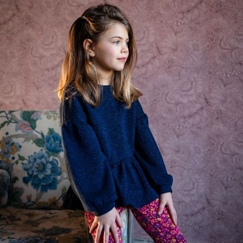 product is aanwezig in onze winkel in Utrecht en ook te bestellen via onze webshop, omschrijving wordt nog geupdate! heb je maatadvies nodig? stuur ons een bericht via Whatsapp of een DM via InstagramShop de Petit Blush ruffle sweater blue lurex trui online bij Labels for Little Ones. Deze geweldige trui is uitgevoerd in een blauwe kleur en heeft een mooi glimmend effect door de lurex draad die in de stof is verwerkt. De trui heeft een brede, geplooide roezel bij de zoom. Met een comfortabele fit door de zachte stof van biologisch katoen en de mooie pasvorm is dit een fijne trui om te dragen. Leuk om te combineren met een rokje, legging of jeans.