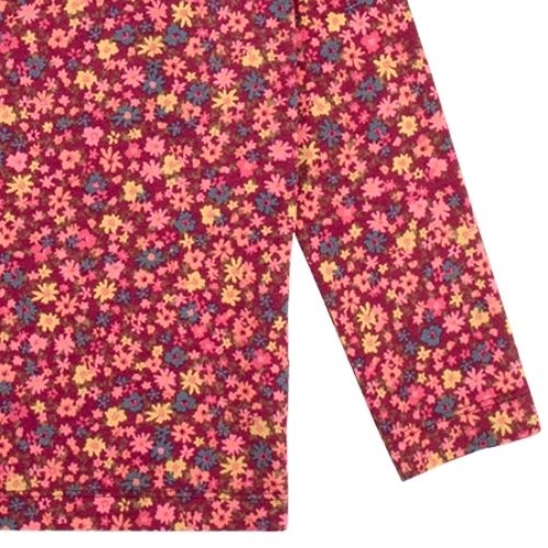 Shop het Petit Blush turtle neck winter flowers aop shirt online bij Labels for Little Ones. Deze vrolijke tee met lange mouwen is uitgevoerd in een rood paarse basiskleur met all-over print winter flowers van gekleurde bloemetjes en heeft een opstaande h...