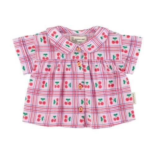 Piupiuchick Piupiuchick baby peter pan collar shirt lilac w/ cherries allover