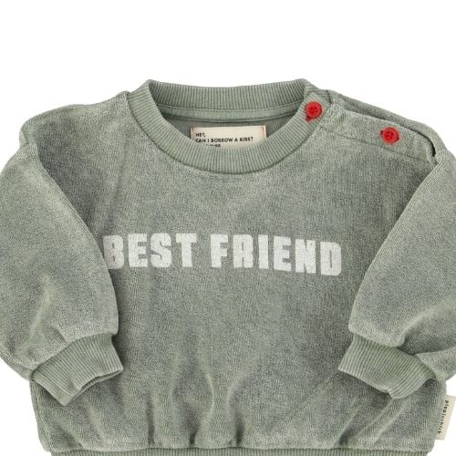 Piupiuchick Piupiuchick baby sweatshirt washed green w/ "best friend" print - trui