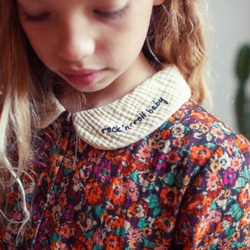 * peter pan kraag met geborduurde tekst ‘rock ‘n roll baby’