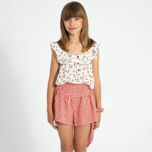 Shop de Piupiuchick sleeveless blouse ecru w/ red flowers allover online bij Labels for Little Ones. Een lief blousje van zachte katoen uitgevoerd met een kleine all-over cherry bloemenprint. De top is mouwloos en heeft rode knoopjes op de achterkant. De schouderbandjes zijn versierd met ruffles.