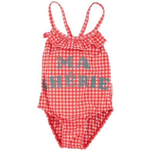 Piupiuchick Piupiuchick swimsuit w/ ruffles red checkered w/ "ma chérie" print - badpak
