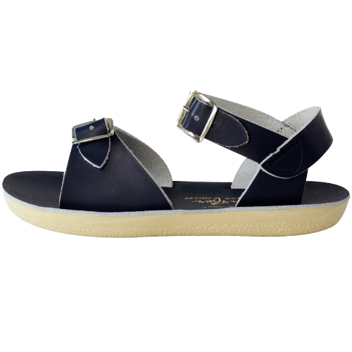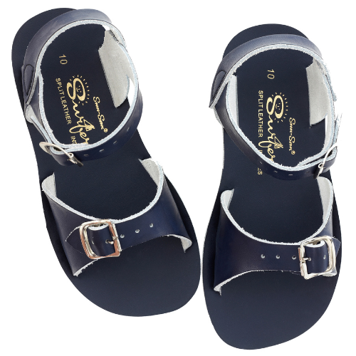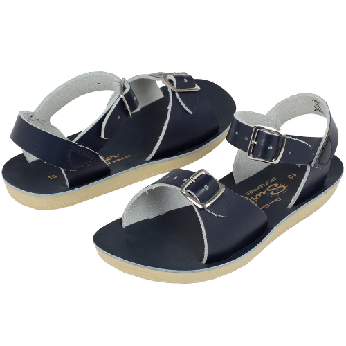 Shop de Salt-Water Sandals surfer navy sandalen online bij Labels for Little Ones. Deze mooie sandalen zijn uitgevoerd in een donkerblauwe kleur navy. De sandalen van Salt Water zijn water resistant en dus ook te dragen in het water, bij het zwembad of aan het strand. Deze open teen sandaal is gemaakt van geweven leer, heeft roestvrije gespen, een comfortabele urethaanzool en verstelbare enkelband en teengesp. De ideale zomer sandaal die optimaal comfort biedt voor de kindervoet.