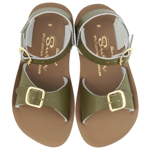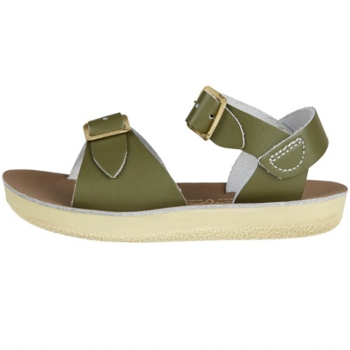 Shop de Salt-Water Sandals surfer olive sandalen online bij Labels for Little Ones. Deze mooie sandalen zijn uitgevoerd in een olijfgroene kleur olive. De sandalen van Salt Water zijn water resistant en dus ook te dragen in het water, bij het zwembad of aan het strand. Deze open teen sandaal is gemaakt van geweven leer, heeft roestvrije gespen, een comfortabele urethaanzool en verstelbare enkelband en teengesp. De ideale zomer sandaal die optimaal comfort biedt voor de kindervoet.