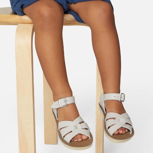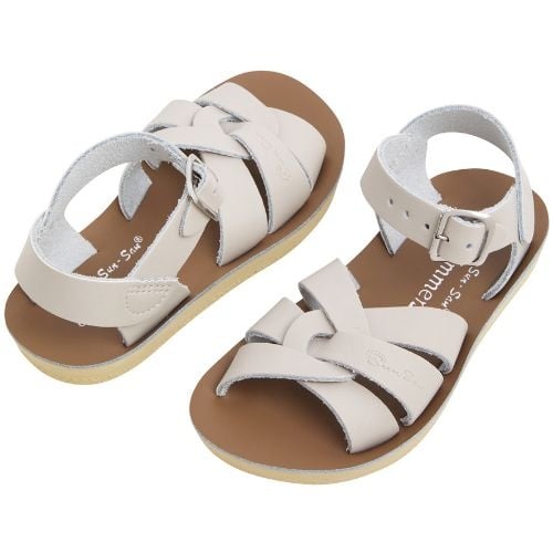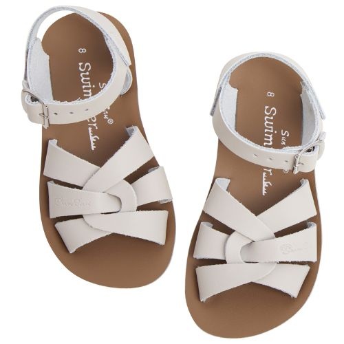 Shop de Salt-Water Sandals swimmer stone sandalen online bij Labels for Little Ones. Deze mooie sandalen zijn uitgevoerd in een neutrale kleur stone. De sandalen van Salt Water zijn water resistant en dus ook te dragen in het water, bij het zwembad of aan het strand. Deze open teen sandaal is gemaakt van geweven leer, heeft roestvrije gespen, een comfortabele urethaanzool en verstelbare enkelband en teengesp. De ideale zomer sandaal die optimaal comfort biedt voor de kindervoet.