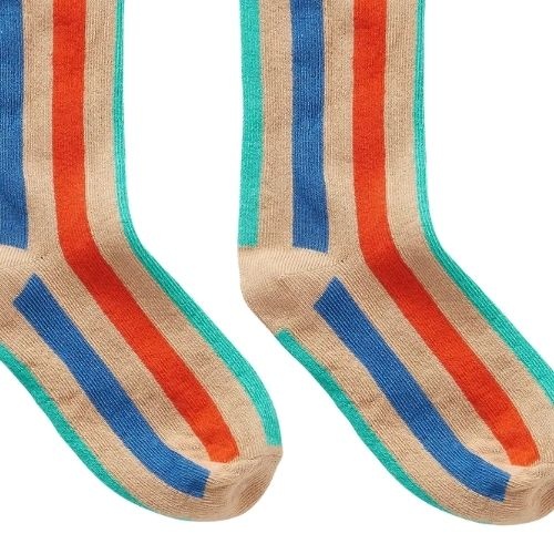 De Sproet & Sproet socks muli stripe green sand sokken bestel je online bij Labels for Little Ones. Deze vrolijke sokken zijn uitgevoerd in een lichte basiskleur sand met all-over stripe print van groene, blauwe en rode kleur strepen. De Sproet sokken hebben een comfortabele fit door de soepele stof en fijne pasvorm.