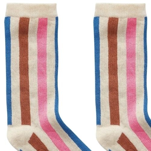 De Sproet & Sproet socks mult stripe pink sesame sokken bestel je online bij Labels for Little Ones. Deze vrolijke sokken zijn uitgevoerd in een lichte basiskleur sesame met all-over stripe print van roze, blauwe en bruine kleur strepen. De Sproet sokken