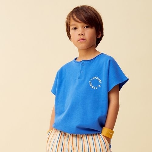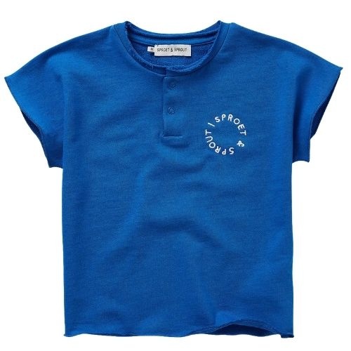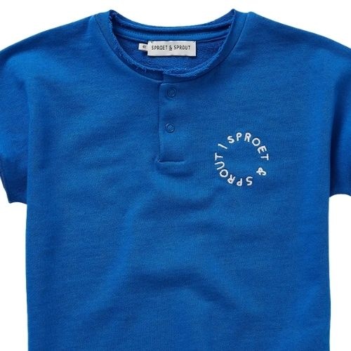 De Sproet & Sproet sweat top grandad sports blue shirt bestel je online bij Labels for Little Ones. Dit shirt met korte mouwen is uitgevoerd in een blauwe kleur met een witte logo tekst op de borst. Het t-shirt heeft een comfortabele fit door het zachte biologisch katoen en fijne pasvorm. Combineer met een shorts, jeans of legging.