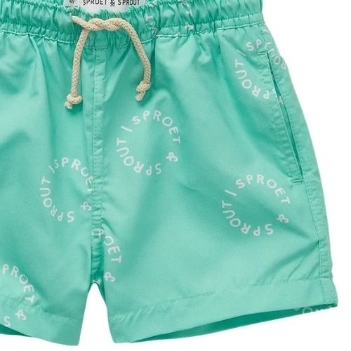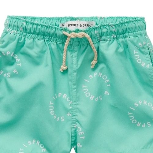 De Sproet & Sproet swim shorts sproet print jade green zwembroek bestel je online bij Labels for Little Ones. Deze zwembroek is uitgevoerd in een lichtgroene basiskleur jade green met witte all-over tekstprint sproet & sprout. De Sproet zwemkleding heeft