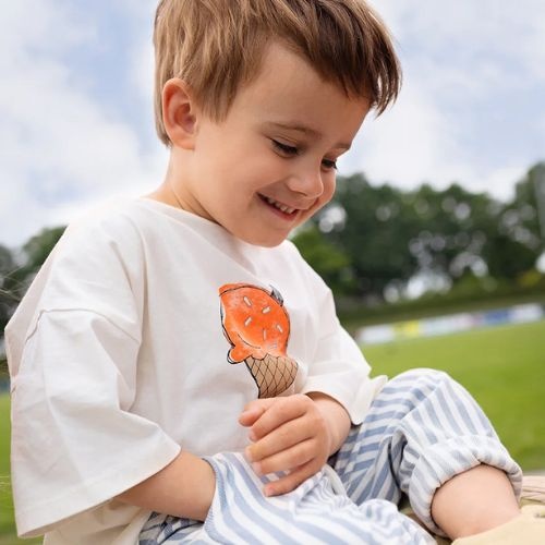 De Sproet & Sproet t-shirt ice cream off-white shirt bestel je online bij Labels for Little Ones. Dit shirt met korte mouwen is uitgevoerd in een off-white met een handgetekende illustratie van een ijsje.Het t-shirt heeft een comfortabele fit door het zachte biologisch katoen en fijne pasvorm. Combineer met een shorts, jeans of legging.