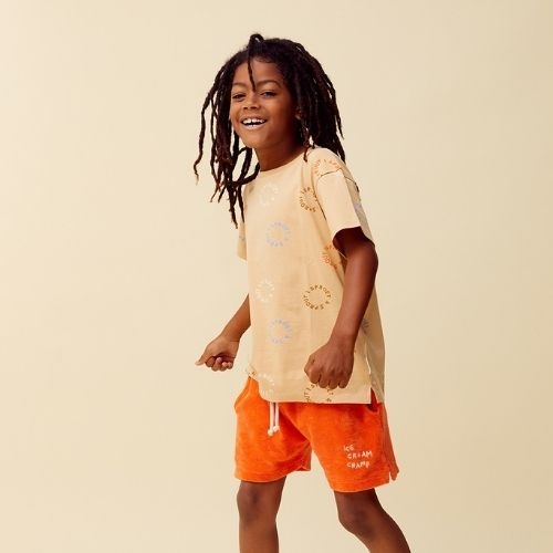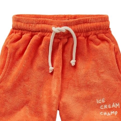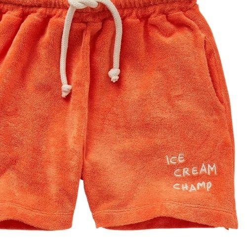 De Sproet & Sproet terry shorts orange sprint orange sprint korte broek bestel je online bij Labels for Little Ones. Deze stoere bermuda van terry stof is uitgevoerd in een oranje kleur. De short heeft een trekkoord en heeft een leuke ‘ice cream champ’ tekstprint aan de onderzijde van de broekspijp. Comfortabele fit door de zachte badstof met fijne pasvorm.