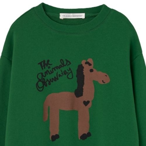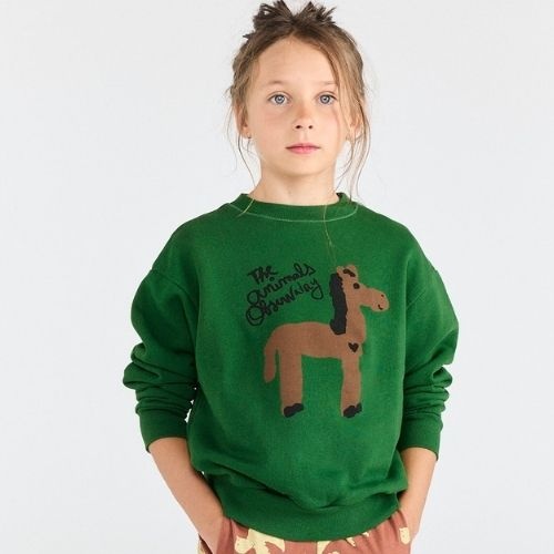 De The Animals Observatory bear kid sweatshirt dark garden trui bestel je online bij Labels for Little Ones. Deze pasvorm van deze sweat is relaxt en iets oversized. De trui is uitgevoerd in een groene kleur en heeft een grappige handgetekende print met merknaam op de borst.
